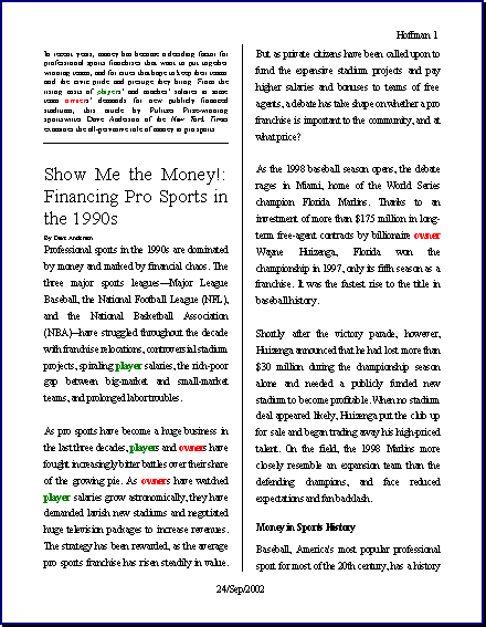 - Add a sports-related picture to page 3 and set the text to wrap around it using either the Page Wrap or Contour wrapping style.