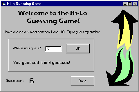 Create an Hi-Lo guessing game. The computer starts by choosing a random
