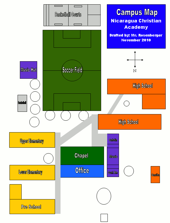 - Make sure to add color to make the map look nicer. Also, remember the soccer field, sidewalks and the parking lot.