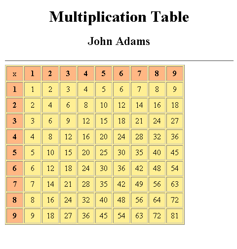 - Change the heading colors (and if necessary change the text color of the multiplication table.)